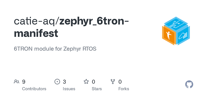 Dans 6TRON, le choix a été fait de rendre disponible un « module Zephyr » regroupant l’ensemble des développements compatibles avec une version donnée de Zephyr, et chaque développement reste accessible individuellement dans un dépôt séparé.